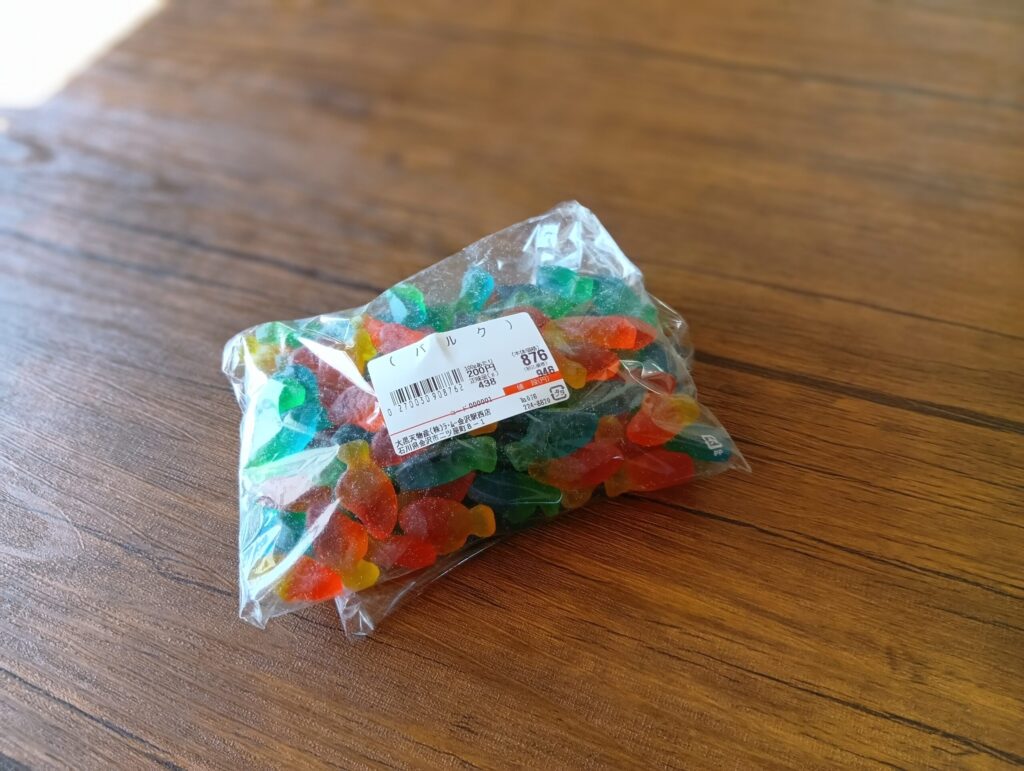普通のスーパーのグミ売り場で見かけるものは、内容量に不満です。